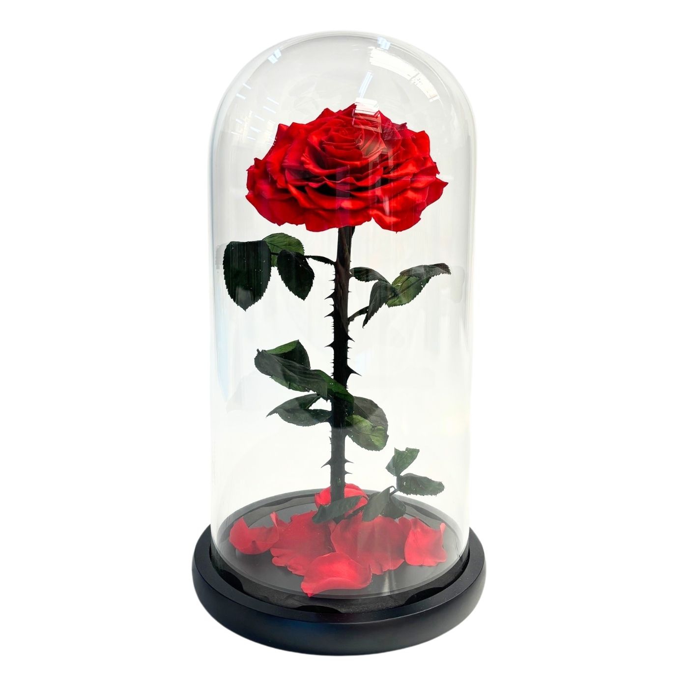 A stunning red eternal rose in large size, symbolizing passion, devotion, and romance. Preserved to last for years, it retains the beauty of a fresh bloom. An unforgettable way to celebrate anniversaries, proposals, or meaningful milestones.